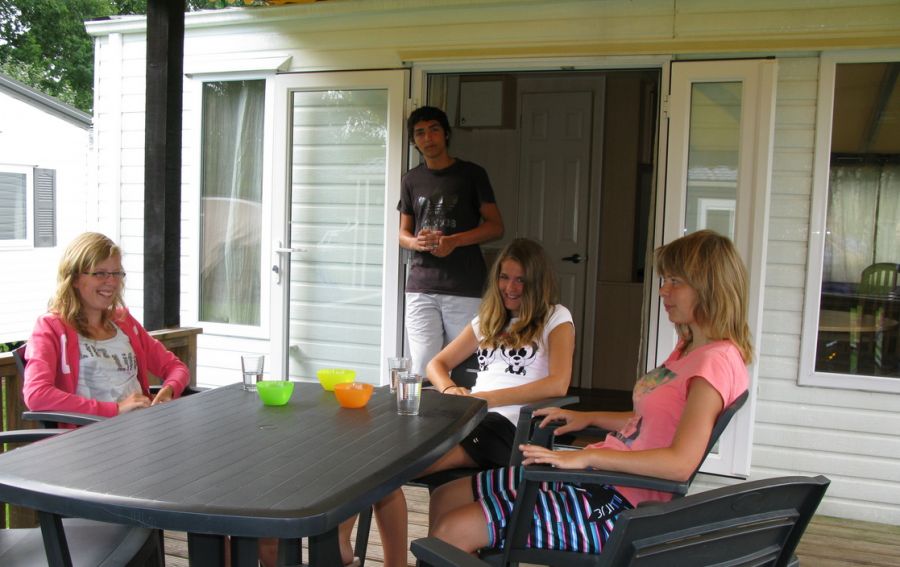 Elke chalet is voorzien van een terras met overdekte luifel. Uniek bij minder weer of bij heel warm weer. Bekijk onze tarieven, of boek voor een prijsberekening direct online.